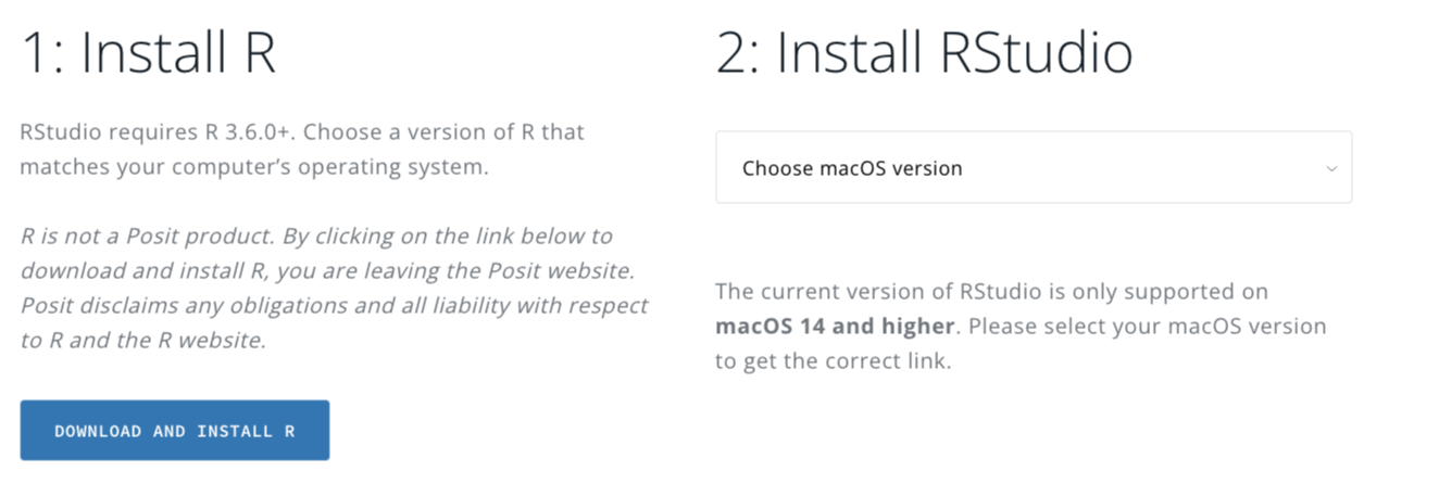 Técnicamente podríamos usar R directamente desde ese software que acabamos de instalar, en Windows y en macOS. Sin embargo, no es una interfaz gráfica muy amigable, por lo que la mayoría de las personas usa otros entornos como RStudio, VSCode o Positron. Si recién estamos empezando, es preferible usar RStudio, porque la mayoría de los tutoriales van a mostrar imágenes de ese entorno.